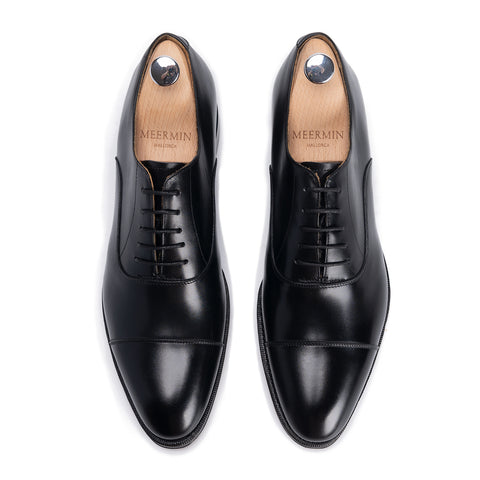 Unser beliebter Linea Maestro Oxford mit Viertelkappe wird vollständig von Hand aus hochwertigem italienischem kalbsleder Conceria gefertigt und auf dem mandelförmigen DANI-Leisten handgenäht.