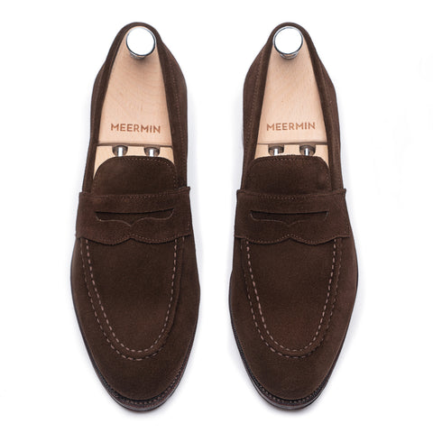 Cette version est fabriquée à partir de notre daim marron anglais ; une belle teinte de marron profond extrêmement polyvalente qui peut facilement être associée à un costume ou à une paire de jeans.