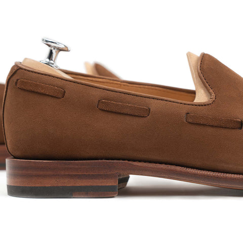 Entièrement doublées de cuir d'agneau souple, elles offrent un confort et une durabilité exceptionnels, tandis que les bavettes cousues à la main et les pompons fermés à la main soulignent leur savoir-faire artisanal. Construites sur une semelle Flex Goodyear resemelable, chaque paire est dotée de semelles intérieures, de trépointes et de talons en cuir tanné végétal, garantissant soutien, confort et vieillissement gracieux à chaque utilisation.