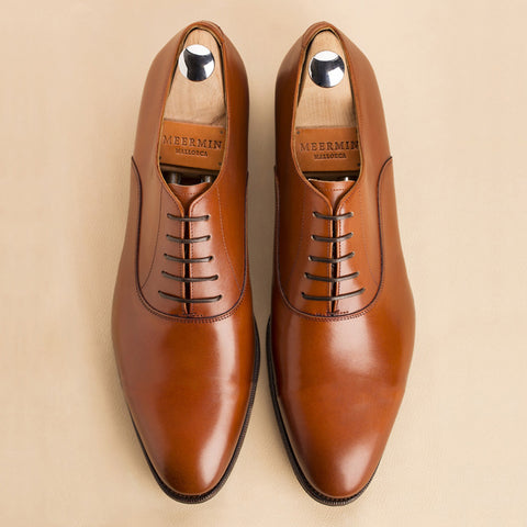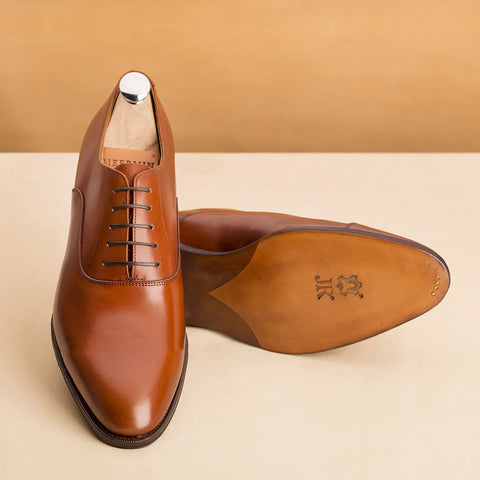 Our popular Linea Maestro quarter plain Oxford handmade using top quality french calf from Annonay, the beechnut naturcalf. Handwelted on the e-medium DANI last.
